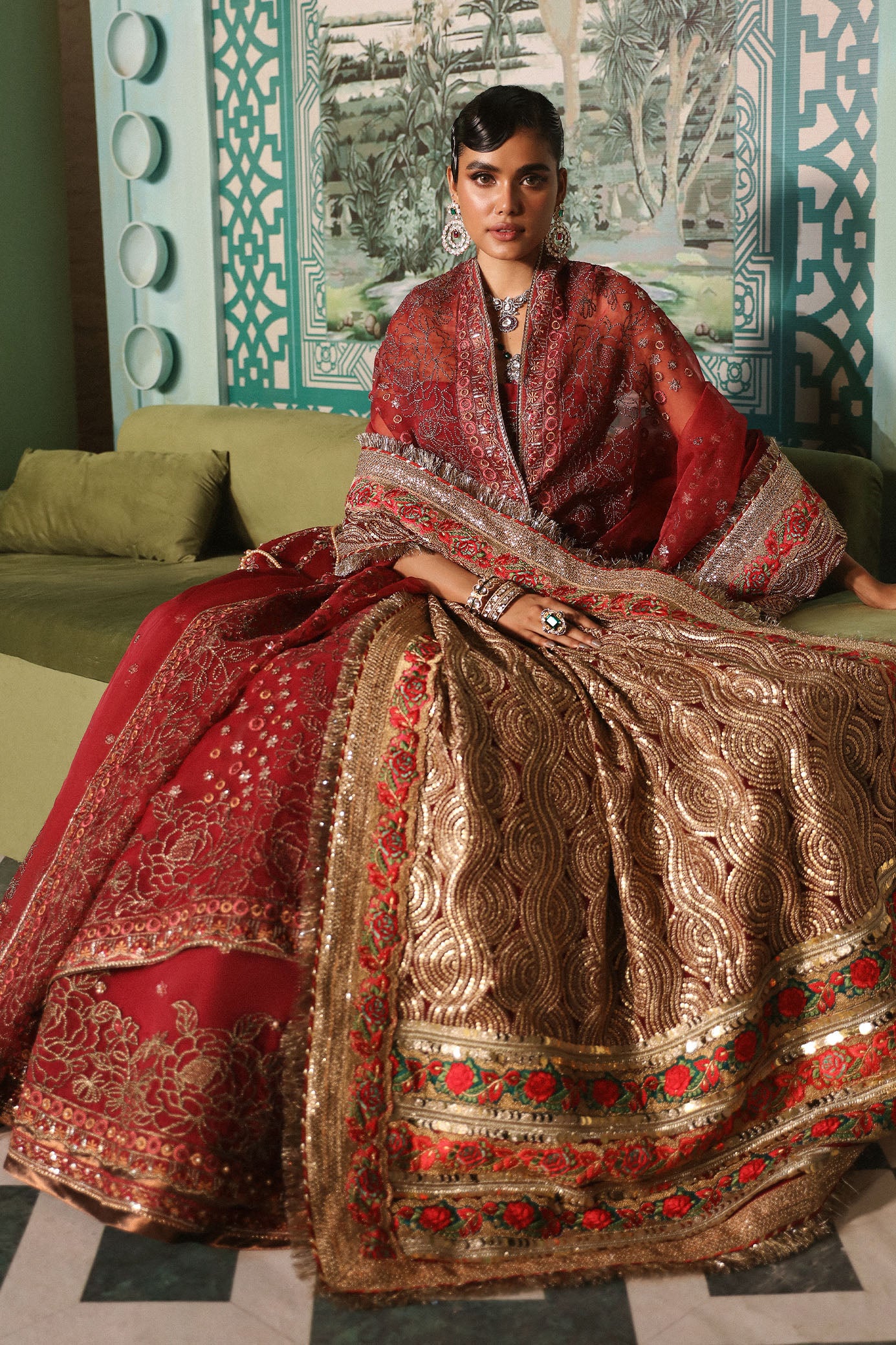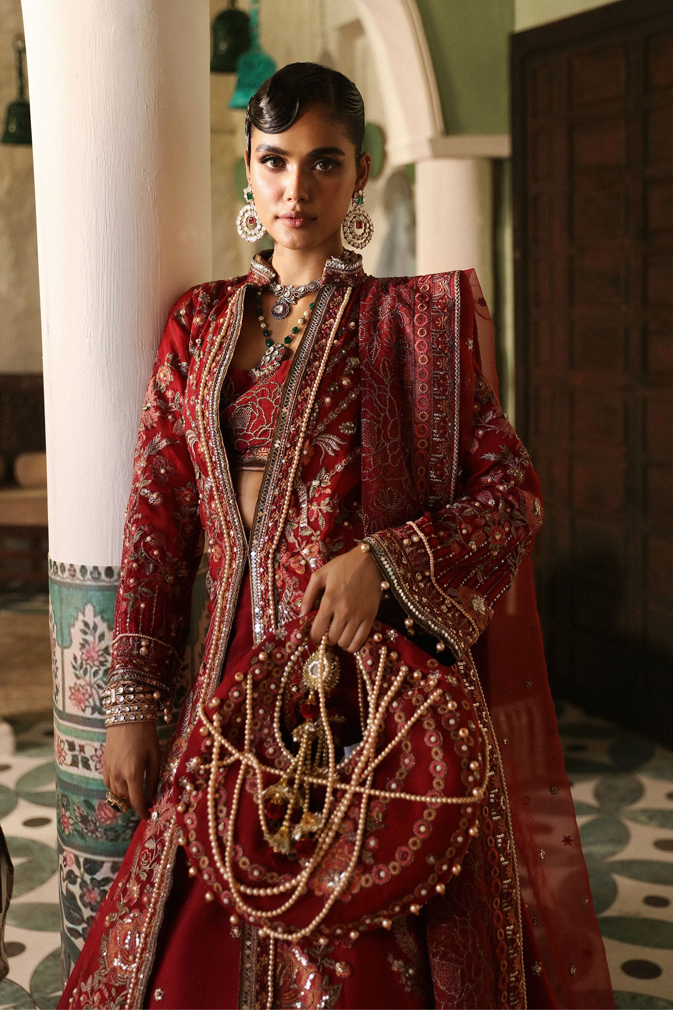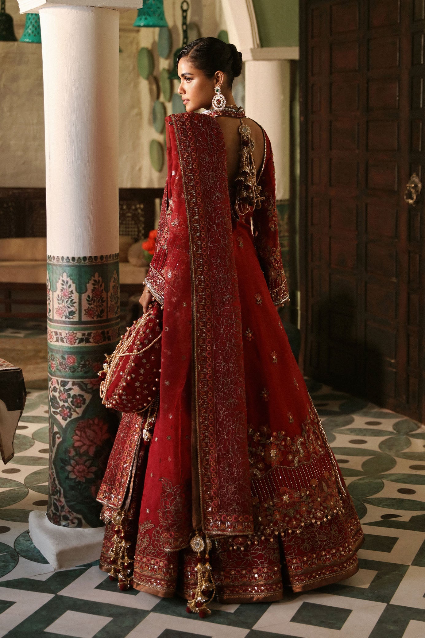 2. Lehenga: The lehenga is heavily embellished with multi-head embroidery and laces, adding to its grandeur.